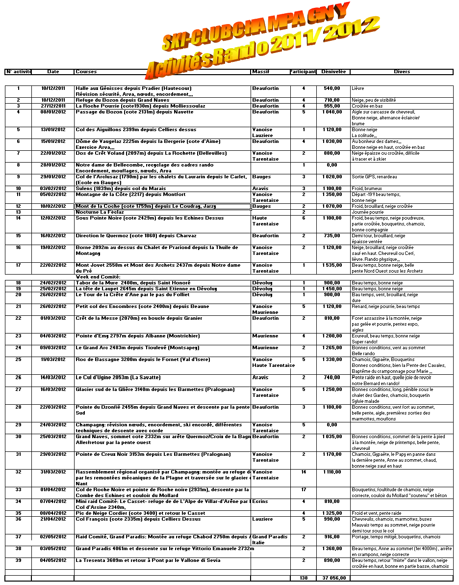 | Les sorties de la Section Rando pendant la saison 2011-2012 : |