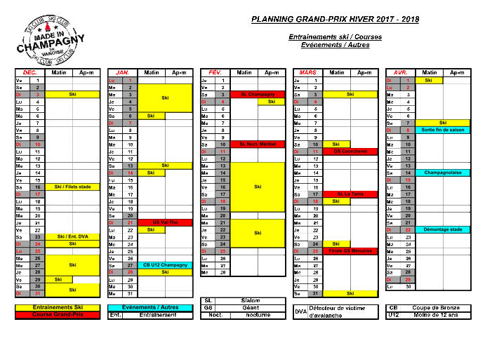 | Planning hiver 2017-2018 des Groupes de la Section Alpin du Ski-Club : | |